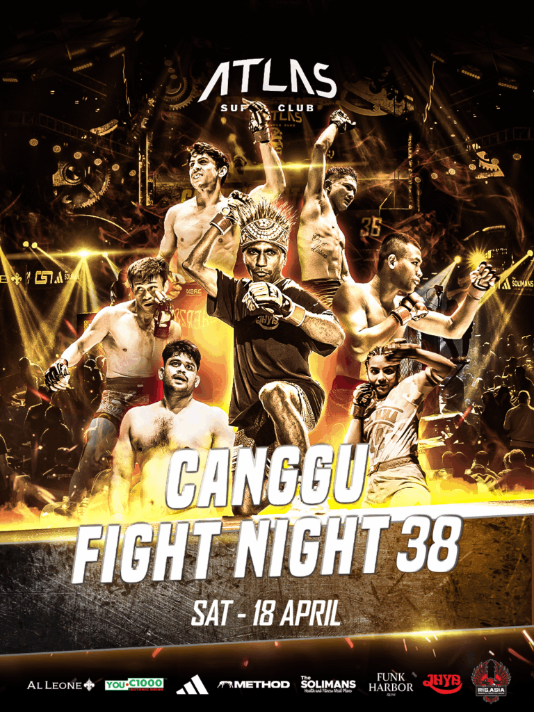 Get ready for a night of intense battles at Canggu Fight Night 38, held at Atlas Super Club. Prepare for a night full of adrenaline and excitement on Saturday, 18 April. Doors open at 1 PM, and the first fight kicks off at 2 PM. Grab your tickets today and don’t miss the opportunity to witness epic showdowns in the cage!